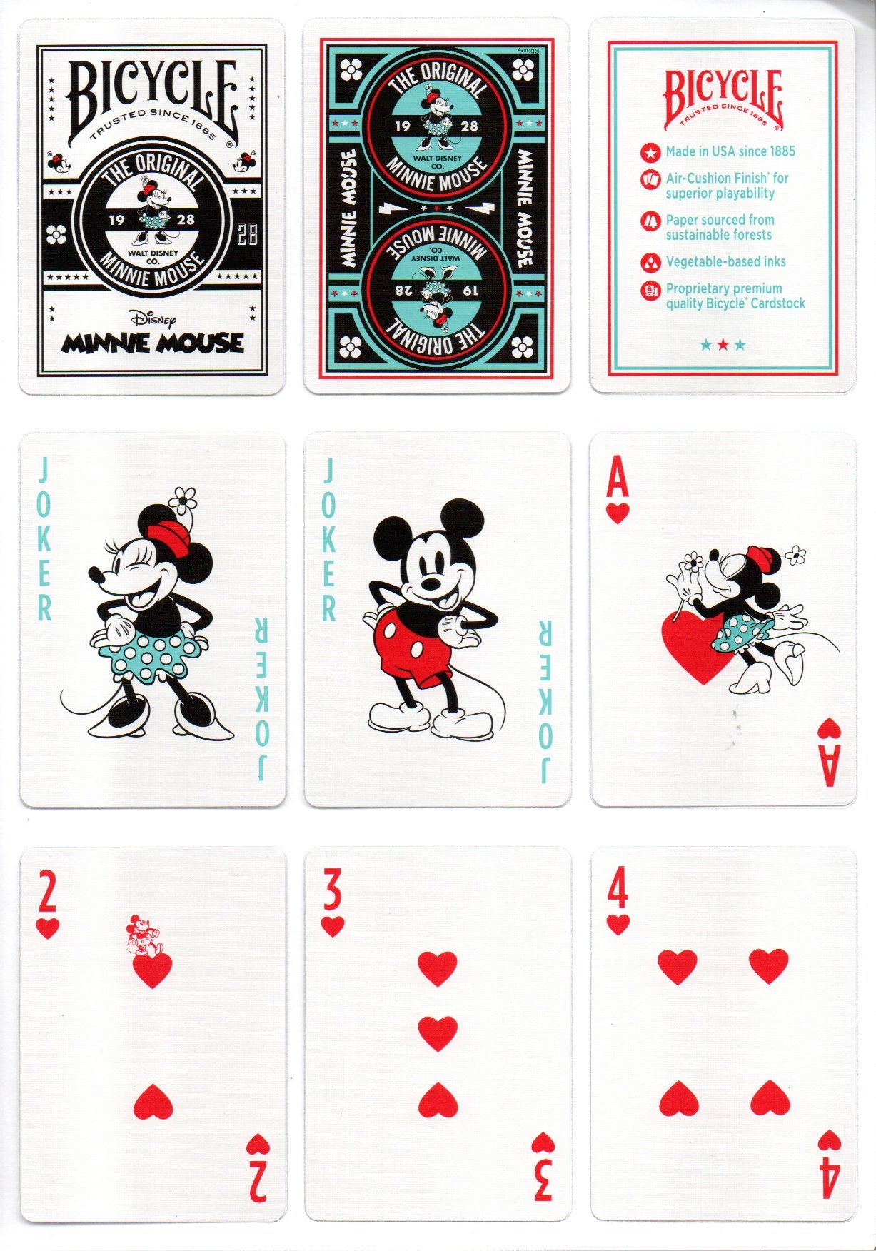 Step aside boys, the ladies are here! Introducing Disney Classic Minnie Mouse Inspired Playing Cards by Bicycle, featuring Mickey Mouse's better half.