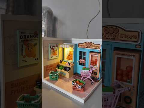 Super Fruit Store DW003 is a plastic DIY miniature house from Rolife Super Creator - Super Store Series. This bright street-side fruit store is now open for business! Each of their vitamin C fruits is infused with super energy to replenish the energy and vitality of city dwellers. Come try the super fresh and juicy peaches and oranges, you won't regret it! Have fun building & playing with this amazing miniature dollhouse!