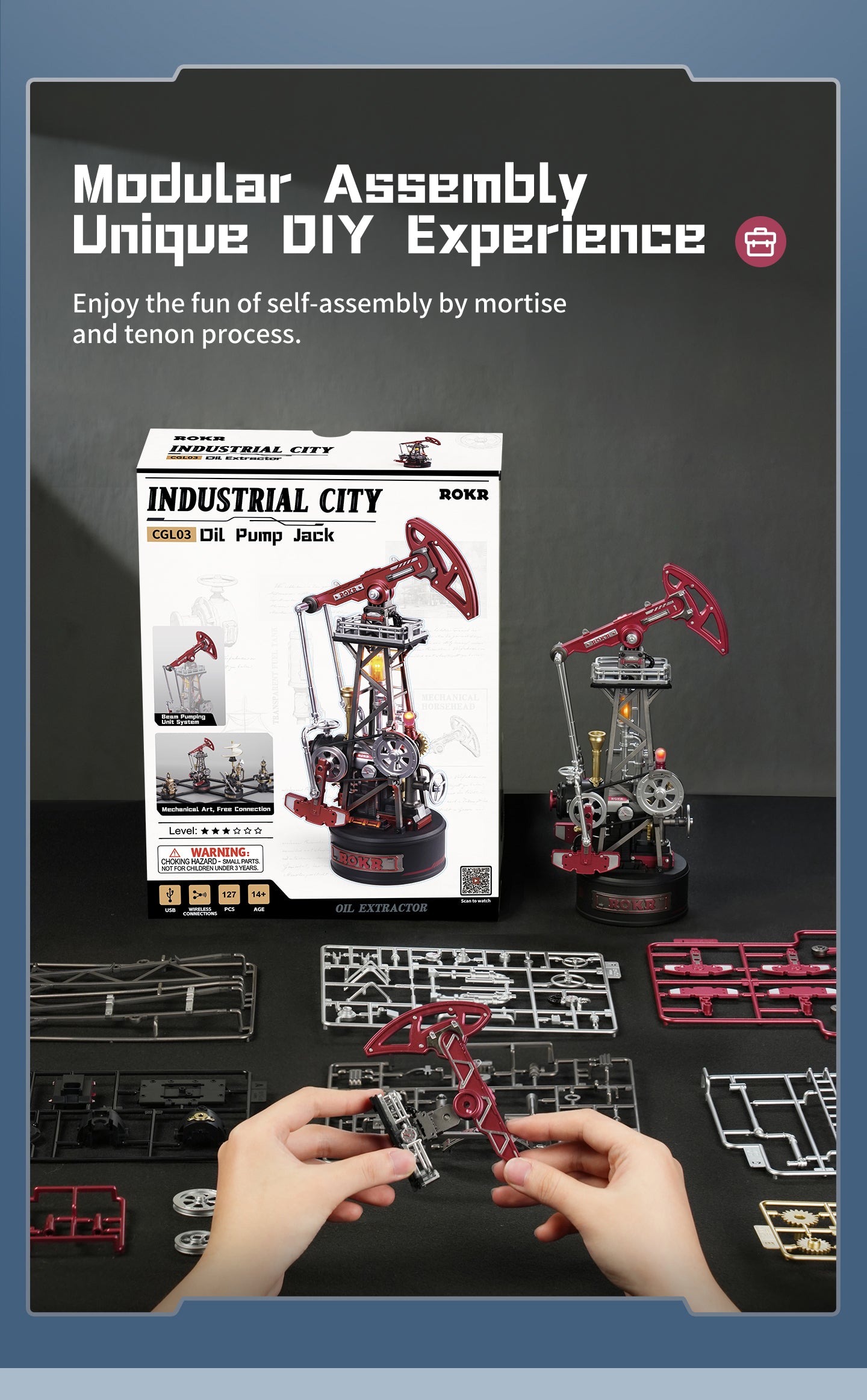 It is a fun-to-build 3D wooden puzzle with a mechanical sense and industrial style. It expresses creative ideas with precise structure and interprets geek spirit with hardcore modeling. The puzzles come in various kinds, ranging from easy to difficult, and are suitable for all ages.