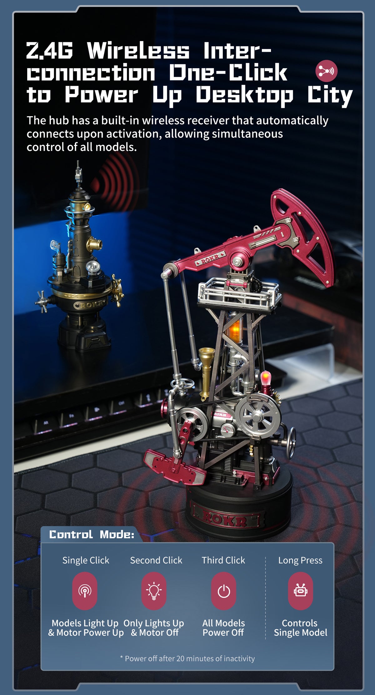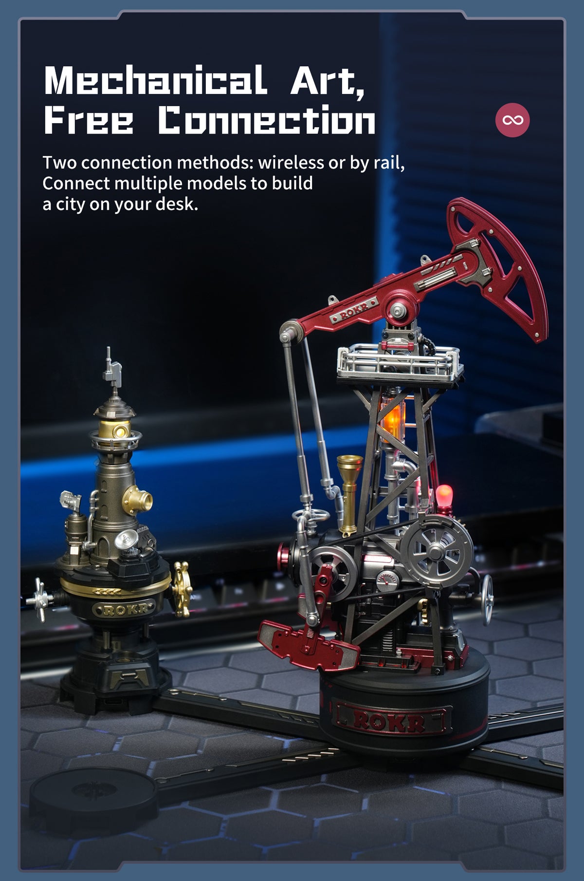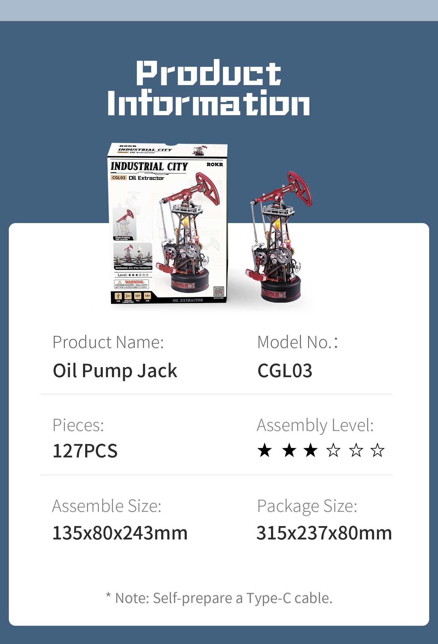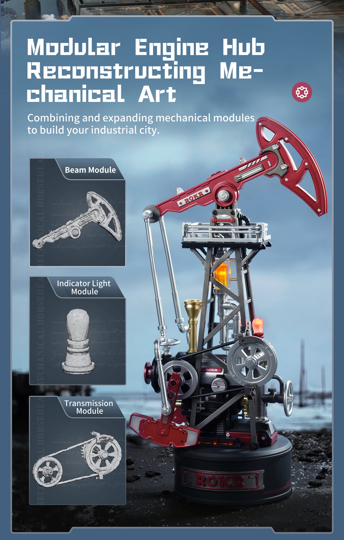 The statuesque Oil Pump Jack rhythmically moves with its powerful gears, pulleys, and pistons. Build this 3D puzzle kit from ROKR and complete your Industrial City collection!