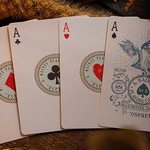 Featuring hand-drawn vintage style artwork throughout, this classic blue deck is printed by Legends PCC on their pre-crushed stock with classic finish and housed in a soft matte tuckbox printed on the inside with an all-over antique plaid pattern. Inspired by the majestic bird of the same name, the Osprey No 2 Vintage Playing Cards are a sight to behold.