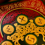 Yggdrasil deck (Limited 1000 decks worldwide, printed by KSPC) Yggdrasil, the immense World Tree in Norse mythology, connects the Nine Realms with its roots and branches. It symbolizes the cosmos, wisdom, and destiny, nourished by the Well of Urd. Odin hung himself on it to gain knowledge of the runes.
